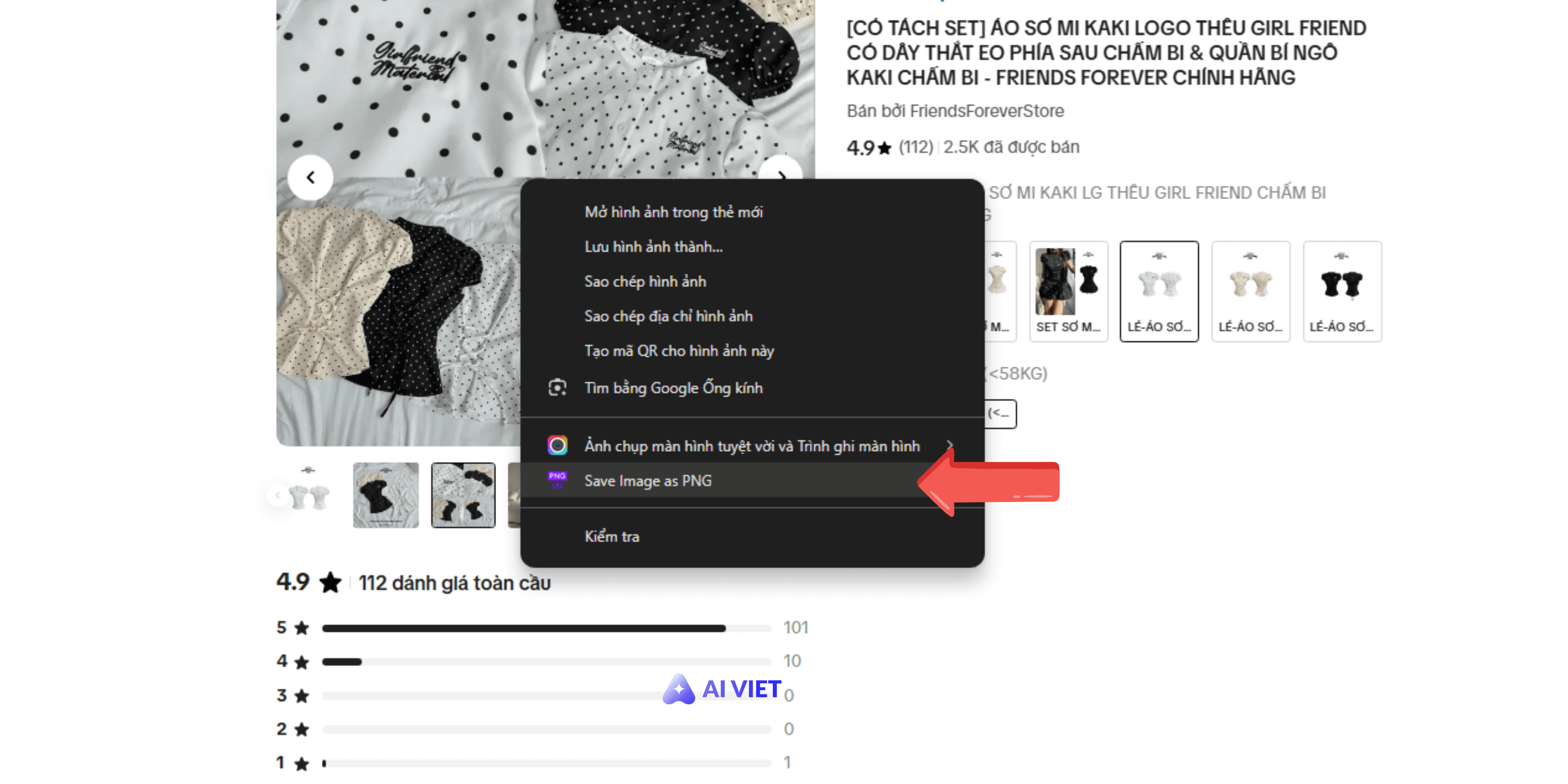 Sau khi đã chọn được sản phẩm và copy link, vấn đề tiếp theo là tải ảnh sản phẩm. Rất nhiều shop để ảnh ở định dạng WebP, tải về vừa khó dùng vừa lỗi khi đưa vào AI. Lúc này mình dùng thêm một extension nữa là Chuyển WebP sang PNG, giúp tải ảnh sản phẩm về máy tính đúng chuẩn PNG, dùng ghép ảnh hoặc đưa vào AI rất tiện.
