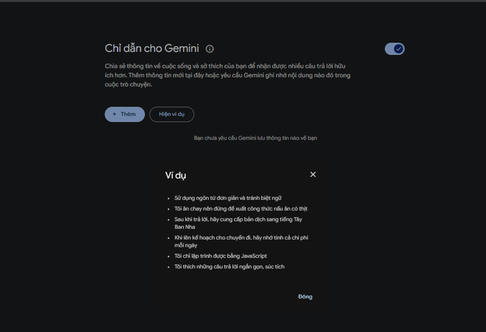Custom Instructions: thiết lập phong cách trả lời cố định (ví dụ: ngắn gọn, thân thiện, chuyên nghiệp).
